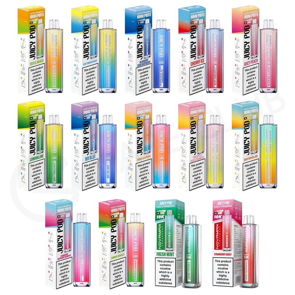 20mg Juicy Pod Novamax Disposable Pod Vape Kit 10000 Puffs, Various Flavours