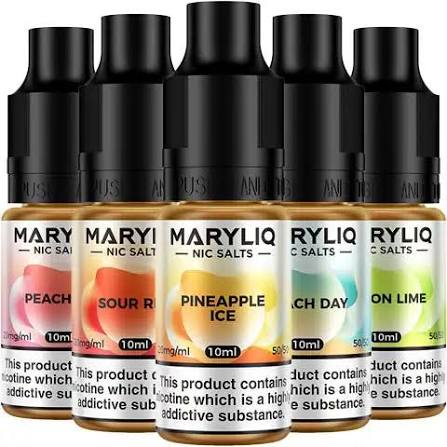 Lost Mary's MARYLIQ is a premium nic salt e-liquid crafted by Lost Mary, available in a convenient 10ml bottle with a potent 10mg or 20mg nicotine salt strength. The well-balanced 50VG/50PG ratio makes it perfect for Mouth-to-lung (MTL) vaping, pods, and starter kits, delivering a satisfying and smooth vaping experience. This TPD-compliant product is designed with a childproof cap and tamper-evident seal, prioritizing safety.