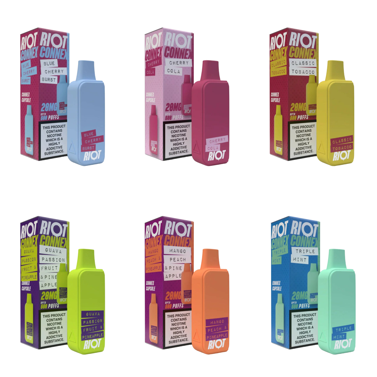 20mg Riot Connex Device Capsules 600 Puffs, Various Flavours