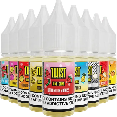 The 20mg Twist Nic Salt 10ml (50VG/50PG) offers a smooth and balanced vaping experience designed for mouth-to-lung (MTL) devices and pod systems. This e-liquid features a 50/50 VG/PG ratio, providing an ideal mix of vapour production and flavour intensity while delivering a gentle throat hit with a 10mg nicotine salt strength. Packaged in a convenient 10ml bottle, it is perfect for on-the-go use and consistent nicotine delivery. Crafted with pharmaceutical-grade nicotine, the formula ensures fast absorption and a satisfying hit, making it suitable for vapers seeking a smooth transition or an alternative to traditional smoking.
