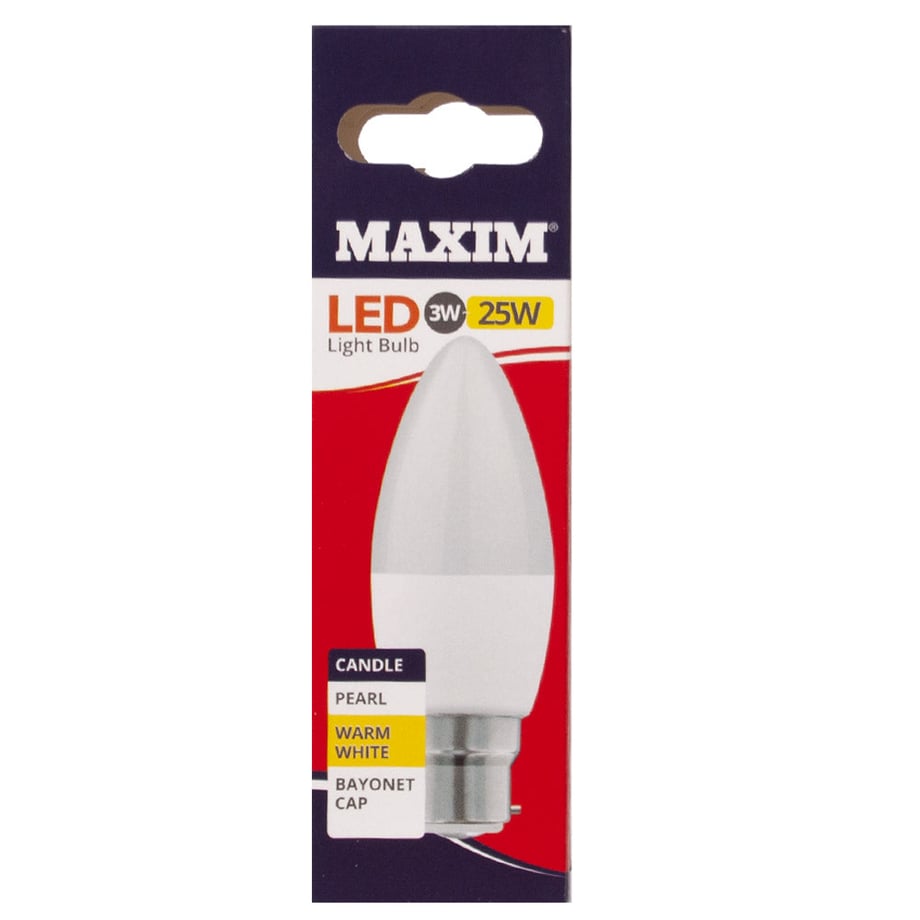 3w=25w Candle Pearl Warm White B22 BC LED Light Bulb