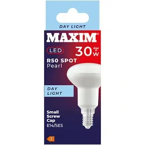 Ideal for illuminating spaces in both domestic and commercial environments, the Maxim R50 Spot Pearl Day Light Light Bulb is an energy-efficient solution. With a frost finish to reduce glare and create a comfortable, ambient environment, the Maxim R50 Spot Pearl Day Light Light Bulb provides day light like-illumination.