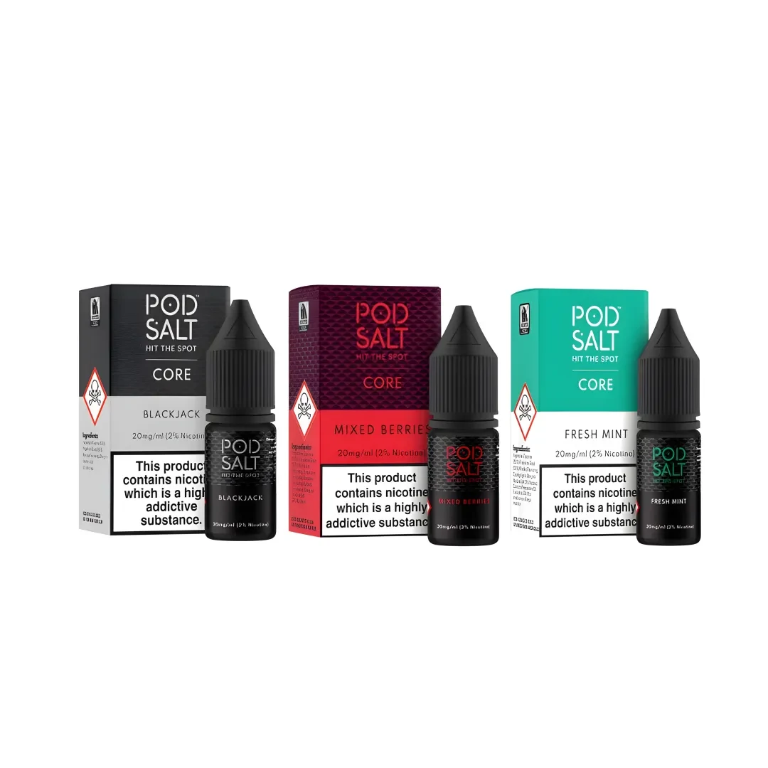 Replicating the nicotine salts found naturally in tobacco leaves to produce a perfectly smooth experience, these Pod Salt Core Nic Shots are available in 5mg, 11mg or 20mg in 10ml units, licenced in the EU by the MHRA under the Tobacco Products Directive 2014. Up to 20 popular flavours have been engineered to provide the best possible taste in a nicotine salt format. From authentic tobaccos to tantalising fruits and cool menthols, you’re bound to find something that hits the spot.