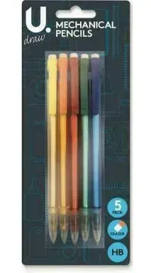 - 5pk, (Yellow, Orange, Red, Green & Blue), with eraser topper, 2 leads in each pencil