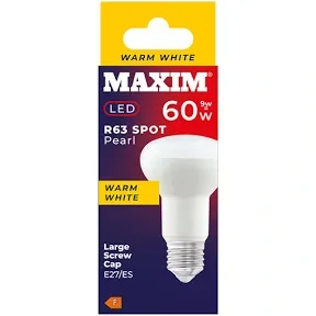Illuminate your space with the warm and inviting glow of the Maxim LED E27 R63 Spot Pearl Bulb. This 10-pack of bulbs offers energy-efficient lighting solutions suitable for a variety of residential and commercial applications, from living rooms and bedrooms to offices and retail spaces.