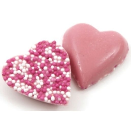These Alma Pink Hearts are very similar to Snowies and Jazzies, but in a fun shape. Strawberry flavour candy with a crunchy candy coating, these Hearts are delicious.
