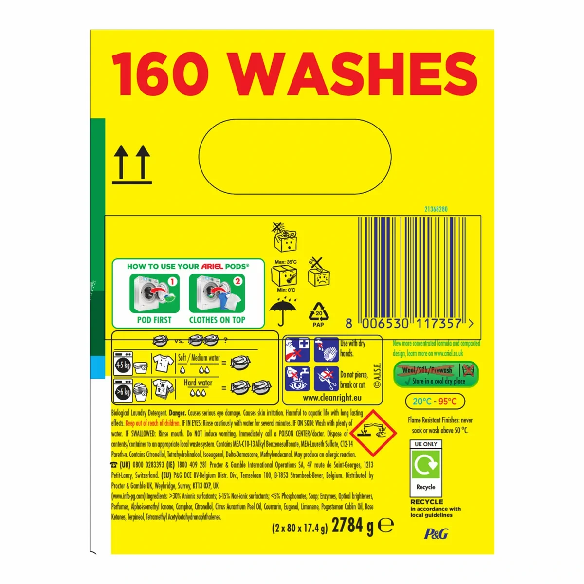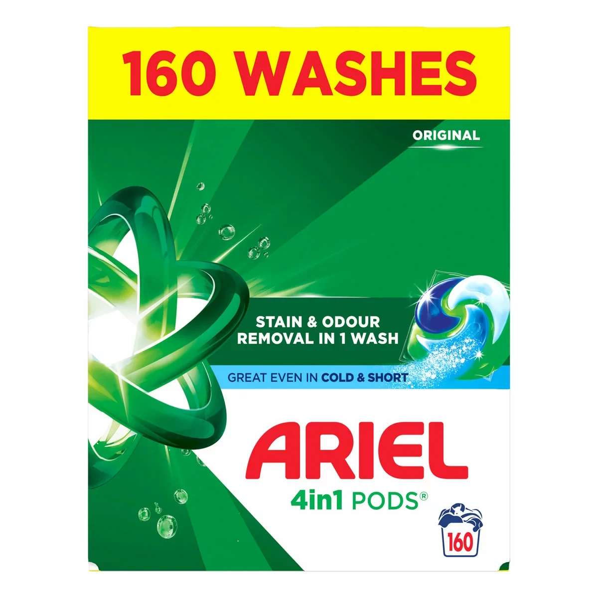 Ariel 4 in 1 Pods liquid capsules provide brilliant stain removal even in a cold wash. They provide extraordinary cleaning in one washing capsule with 5 easy steps: 1. Lift stains, 2. Brighten, 3. Freshen, 4. Protect fabrics and 5. Brilliant stain removal even in a cold wash thanks to the COOL CLEAN™ Technology. Ariel liquid capsules come with a smart multi-compartment design that keeps ingredients separate until they reach the wash. Upon contact with water, the film dissolves to release powerful stain-removing technologies, offering the deepest and strongest pods clean ever. Ariel 4 in 1 Pods liquid capsules come in recyclable packaging.