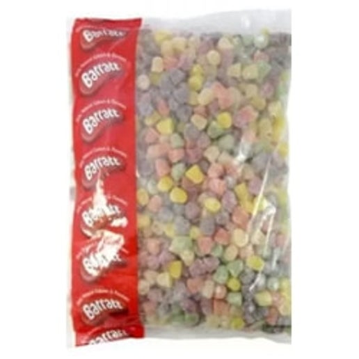 Colourful jelly sweets are always popular and Barratt Dew Drops certainly demonstrate this. Fruit flavoured jellies in a number of colours. Ingredients Sugar, Glucose Syrup, Maize Starch, Water, Beef Gelatine, Acid (Citric Acid), Colours (Anthocyanins, Paprika Extract, Curcumin), Flavourings, Plant Concentrates (Safflower, Spirulina).