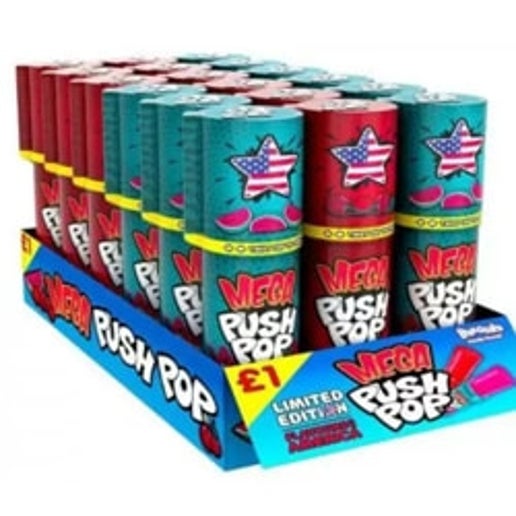 Push Pop candy is a delicious fruity lollipop that comes in a tube, allowing you to enjoy the sweet juicy retro candy while being able to save it for later. These limited edition American push pops come in two fruity flavours, cherry and watermelon, which one will you like best? The Bazooka Mega Push Pops are everything kids love about Push Pops only BIGGER! Double size of Push Pop in all the favourite flavours.