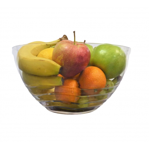 This clear design salad bowl is a great addition to any home or summer collection, made from PS (plastic) material and featuring an elegant swirl pattern around the bottom of the bowl, perfect for both indoor and outdoor use.