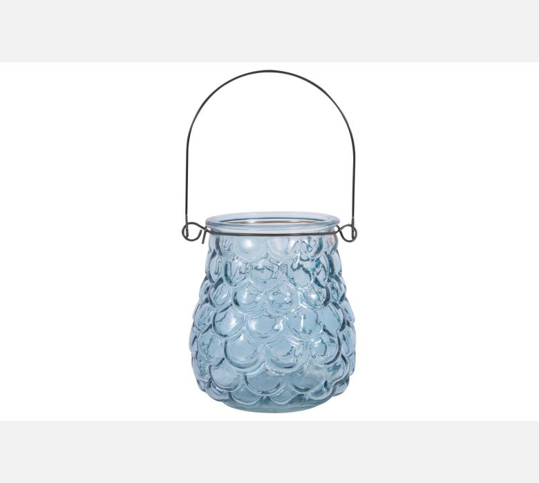 An elegant, decorative design for indoor and outdoor spaces, the Hanging Glass Votive Jar from Bello creates an ambient, mesmeric incandescent effect when utilised with candles or garden lights. A simple decorative addition to the home or garden, the Hanging Glass Votive Jar includes an integrated metal wire hanger. The Glass features a stunning turquoise scalloped finish to produce a shimmering effect.