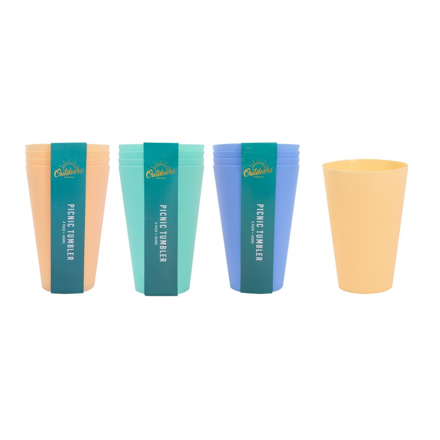 Bello Plastic Picnic Tumbler 14oz 4 Pack, Various Colours