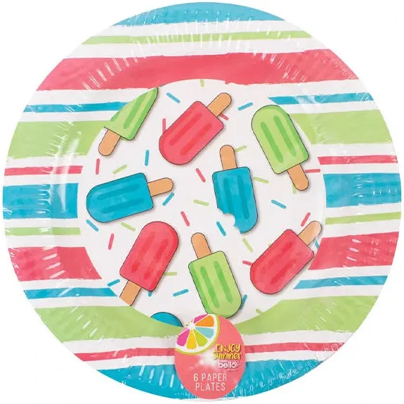 With a vibrant, colourful print features stripes and iced lollies, the Bello Paper Plates are ideal for serving an array of foods, from burgers, sandwiches and pizza to cakes, desserts and fruit.