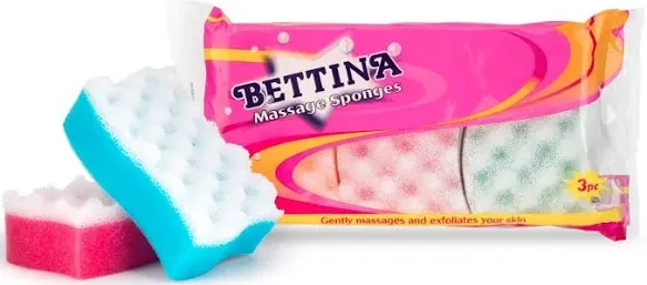 Bettina Massage Sponges gently massages and exfoliates your skin. Each sponge is curved for easier grip, for use in the bath, shower or even to clean with them.