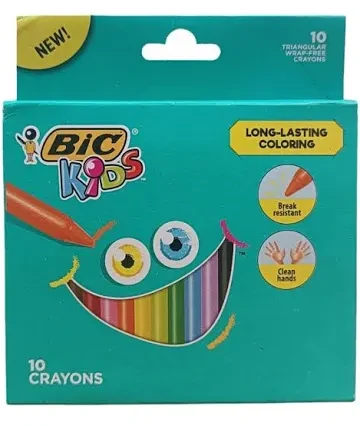 Bic Kids Triangular Crayons Colouring 10 Assorted Colour For Drawing and Crafts