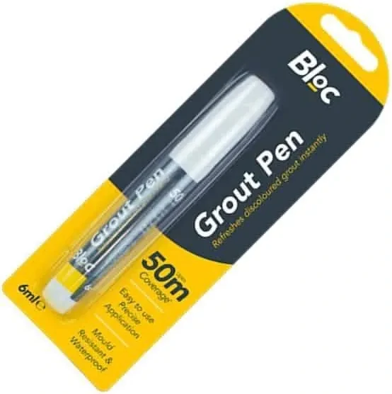The Bloc Grout Pen is a 6ml design which provides up to 50m coverage. Easy to use with precise application, the Bloc Grout Pen refreshes discoloured grout instantly, providing a mould-resistant and waterproof finish. 6ml 50m Mould-Resistant & Waterproof The Bloc Grout Pen is ideal for restoring grout on wall or floor tiles, reviving dirty and stained tile grout for a clean appearance.