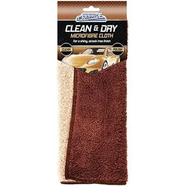 The Car Pride clean & dry microfibre cloth features a double-sided design that features varied abrasions for cleaning and polishing cars and vehicles. The microfibre cloth can be used on windscreens, windows, interiors, and exteriors.