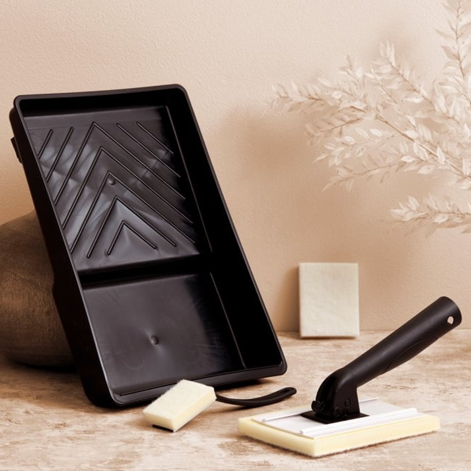 This fantastic set an contains 8" plastic tray, a small handle and a large handle plus 3 different-sized reusable pads. This paint set is perfect for all your DIY painting and decorating projects, ideal for both interior and exterior work.