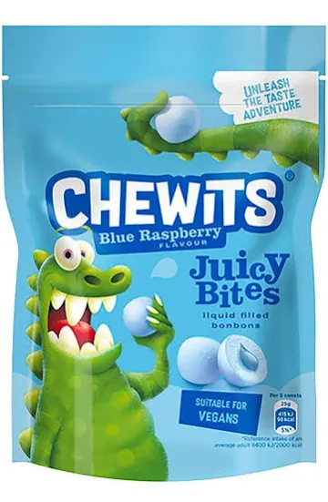Sugar, glucose syrup, vegetable fats (palm, coconut), humectant (sorbitol), maltodextrin, fruit juice from concentrate (orange, raspberry, pineapple), acids (citric acid, lactic acid), natural flavouring, emulsifier (sucrose esters of fatty acids), salt, concentrate from (spirulina), spirulina extract, acidity regulator (sodium lactate).