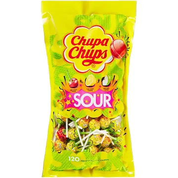Chupa Chups Sour 120 Assorted Flavour Sour Lollipops 1.4kg