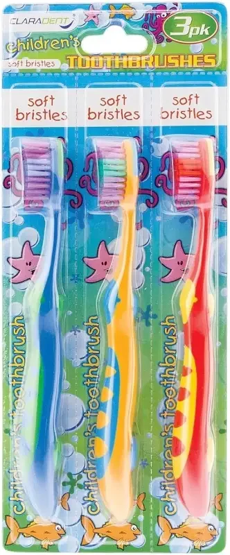 Claradent Assorted Colour Soft Bristle Children Toothbrushes 3 Pack