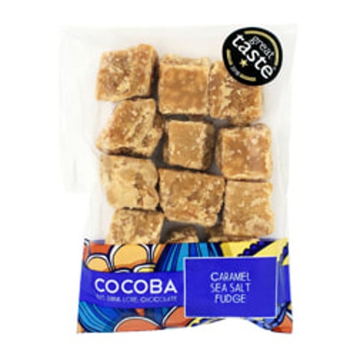 This delicious fudge is handmade in Copper bottomed pans before being cooled overnight in wooden trays to guarantee a smooth creamy texture. The sweetness of the caramel is enhanced by the sea salt flakes that explode in your mouth.