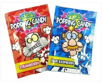 Strawberry: Sugar, glucose syrup, carbon dioxide, lactose (milk), water, flavouring, colour: E120. Blue Raspberry: Sugar, glucose syrup, carbon dioxide, lactose (milk), water, flavouring, colours: E120, E133.