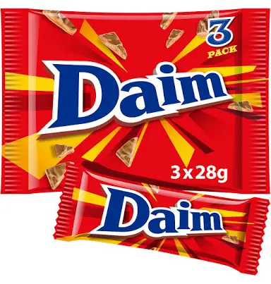 Sugar, Palm Oil, Cocoa Butter*, Cocoa Mass*, Whey Powder (from Milk), Almonds (3%), Skimmed Milk Powder, Milk Fat, Modified Whey (from Milk), Sweetened Condensed Skimmed Milk, Salt, Emulsifier (Soya Lecithin), Flavourings