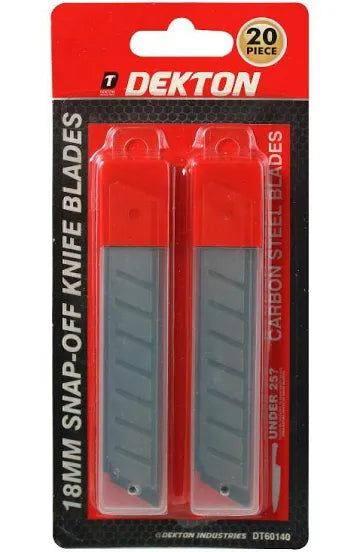 The Dekton Snap-Off Knife Blades includes 20 replacement blades for most utility knives. Suitable for an array of artistic, domestic & industrial tasks, these high quality blades are crafted from high quality carbon steel with multiple snap off locations.