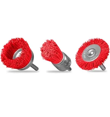 Ideal for surface preparation and wood finishing tasks, the Nylon Brush Set includes three assorted heads.