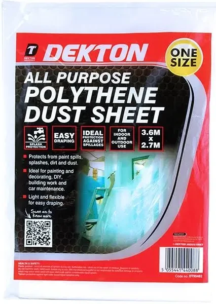 Protects from paint spills, splashes, dirt, and dust. Ideal for painting and decorating, DIY, building work and car maintenance. Light and flexible for easy draping.