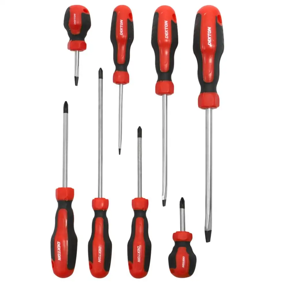 This Dekton 8 piece screwdriver Set includes 4x Flat(4.0 x 80mm, 5.5 x 38mm, 6.5 x 125mm, 8.0 x 150mm) and 4x Phillips(PH1 x 80mm, PH2 x 38mm, PH1 x 150mm, PH2 x 100mm). The Screwdriver features magnetic tips and ergonomic anti-slip handles for maximum comfort and grip, which makes it excellent control & enabling fast, efficient screw insertion and removal. It can be used for all types of electrical jobs and other general-purpose. The Flat Screwdriver is suitable for Professional or DIY use.