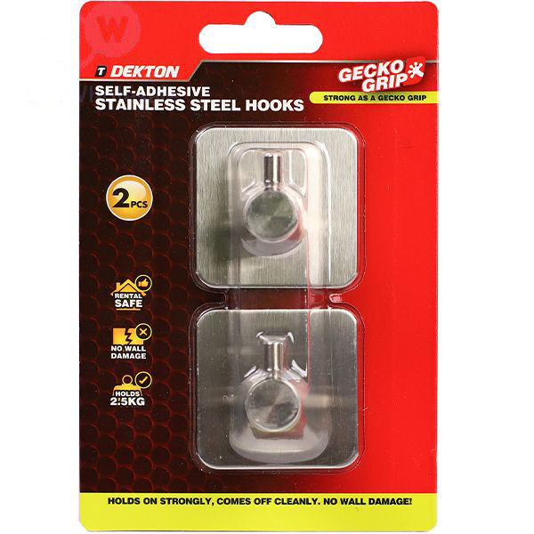 Dekton Gecko Grip Self Adhesive Stainless Steel Hooks 2 Pack