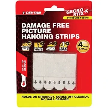 Dekton Gecko Stix Damage Free Picture Hanging Strips 4 Pack, Various Sizes