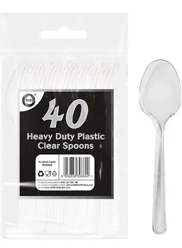 Made of heavy-duty plastic, they are strong enough to handle dense foods and are disposable for easy clean-up. Planning a special occasion has been made easy with these extra-value clear plastic spoons. Perfect for the go, these disposable spoons are also great for a coffee morning or cafe food! A suitable alternative to your regular tableware, these throwaway spoons create light work of guaranteeing everyone at the party has what they need to enjoy their food. These are heavy-duty, making them good for even heavy foods! Pack Size: 40 Heavy Duty Strong Plastic Picnic Essential! Disposable A great solution for camping, BBQs, parties or any other special occasions.