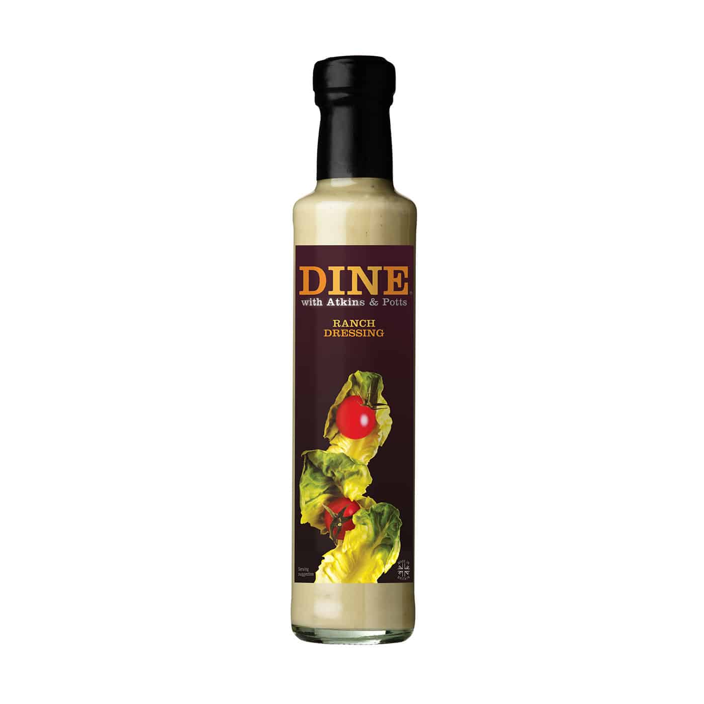 DINE IN with Atkins & Potts Ranch Dressing. This incredibly versatile dressing can be drizzled over Caesar salads, grilled vegetables, barbecues, baked potatoes or vegetable burgers. Mix with Cajun spices to make a dip for tacos and tortillas.