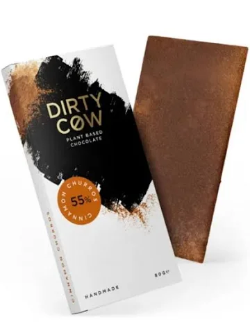 Dirty cow chocolate (55% cocoa mass, sugar, cocoa butter, soy lecithin, natural vanilla), cinnamon and sugar.