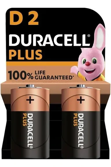 Duracell Plus LR20/MN1500 D 1.5v Batteries 2 Pack