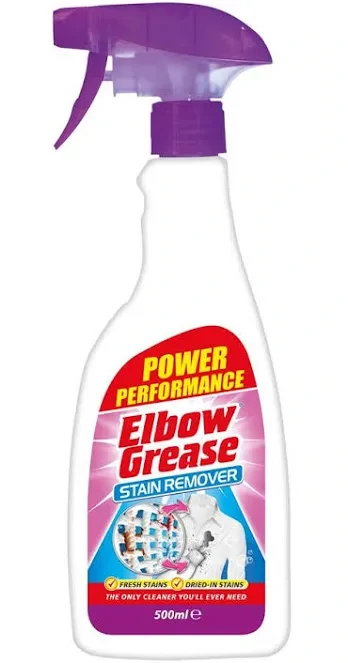 instructions, ensuring that anyone can achieve professional results at home. Its economical nature means you get a cost-effective solution without compromising on performance. Gentle on fabrics yet tough on stains, this essential household item is a perfect addition to every cleaning cupboard. Effectively tackles tough stains Suitable for fresh and dried-in stains 500ml spray bottle for easy use Works on various surfaces and fabrics Quickly breaks down stains Elbow Grease Stain Remover Spray stands out with its remarkable versatility and trusted performance. Ideal for busy households, it simplifies the cleaning process by being effective on a multitude of stains, from kitchen spills to laundry mishaps. Its user-friendly design and clear instructions make it accessible to everyone, ensuring that even novice cleaners can achieve spotless results. The spray's economical nature offers great value, allowing you to maintain a pristine home without stretching your budget. As a brand synonymous with quality, Elbow Grease provides peace of mind that your fabrics and surfaces are in safe hands. Keep this stain remover on hand for quick responses to unexpected messes, and enjoy the confidence of a cleaner, fresher home environment.