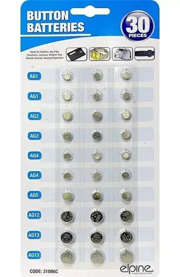 Power your small devices with ease using the Pack of 30 Elpine AG Coin Cell Lithium Battery Set. These high-performance coin cell batteries are designed to provide long-lasting, reliable power for a wide range of everyday devices. Whether you’re powering watches, hearing aids, toys, calculators, remote controls, or key fobs, this pack ensures you have the energy you need at an unbeatable value.