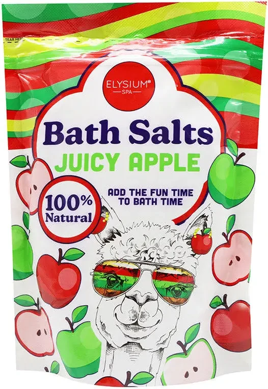 Elysium Spa Epsom salts, whether soaking your feet or taking a bath in Epsom salts, you will soothe muscle aches, relax the body, improve circulation and even treat sunburn. Fragranced with juicy apple in a resealable bag for easy storage.