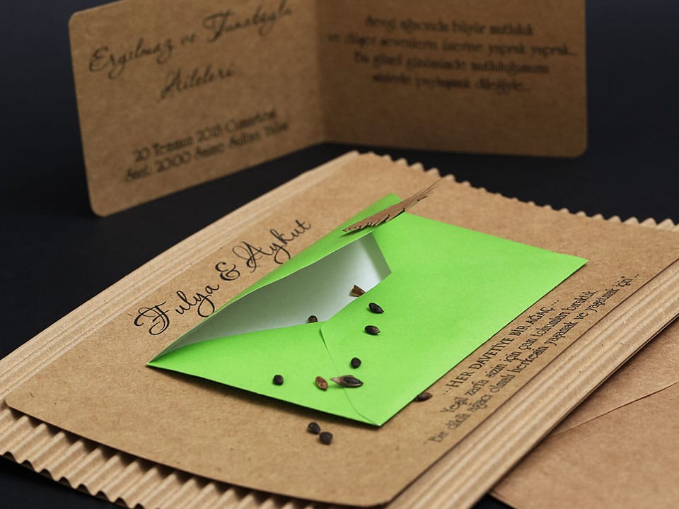 - Inner print of the invitation includes the printing of the bride and groom names, invitation text, family names, date, time, and address information on the inside of the invitation.