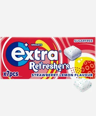 Extra Refreshers Strawberry Lemon Sugarfree Chewing Gum Handy Box 7 Pieces 16 x 19g