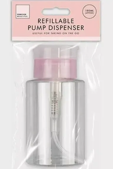 The Refillable Pump Dispenser from Forever Beautiful is a practical and sustainable solution for storing and dispensing personal care products. An eco-friendly alternative to disposable plastic bottles, the Refillable Pump Dispenser is also ideal for travel and maintaining beauty routines on-the-go. 180ml 11cm X 5.5cm Pump Action Refillable Clear Ideal for lotions, soaps, shampoo, conditioners or cleaners, the Refillable Pump Dispenser is a mess-free designs that's easy to refill with a wide opening.