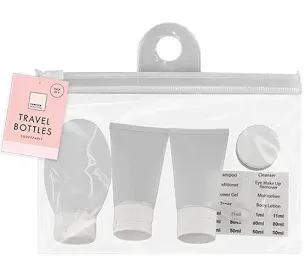 Take toiletries on the go without packing big bulky bottles, these squeezable travel bottles are the ideal size for suitcases, travel bags and backpacks. Each set comes with a clear zip lock carry bag Containing 1 x 80ml bottle, 2 x 50ml bottles 1 x 11ml screw top jar. Also included is a funnel for easy filling, and a selection of stickers with cosmetic names and measurements.