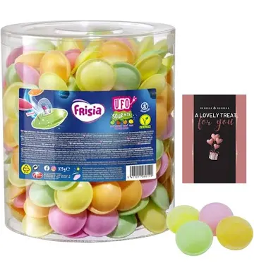 Sugar, Maize starch, Water, Dextrose, Acid (E334), Acidity regulator (E500), Flavourings, Colours: E100, E132, E162.