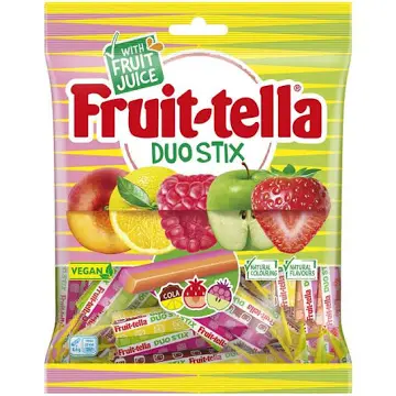 Glucose Syrup, Sugar, Coconut Oil, Fruit Juices from Concentrate (Raspberry, Lemon, Apple, Strawberry, Peach) (2.5%), Acids (Citric Acid, Malic Acid). Gelatine, Cocoa Butter, Humectant (Glycerol), Concentrates (Carrot, Elderberry, Black Carrot, Safflower, Spirulina, Pumpkin, Apple, Blackcurrant, Radish), Natural Flavourings, Gelling Agent (Gum Arabic), Dextrin, Spirulina Concentrate