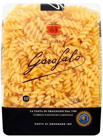 Coming from the Neapolitan tradition and a classic to keep in your pantry, Fusilli Garofalo are golden bronze-drawn curls of wheat, an excellent Pasta di Gragnano IGP. You can see the quality: even if you drain the pasta a minute after it is cooked properly, it is tender and al dente. They go well with Mediterranean vegetables and classic sauces.