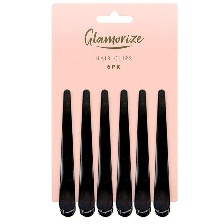 Conveniently style your hair with the Glamorise Black Hair Clips 6 Pack. These sleek and durable hair clips securely hold your hair in place, making them perfect for everyday wear or special occasions. With 6 included in each pack, you'll always have a reliable hair accessory on hand.