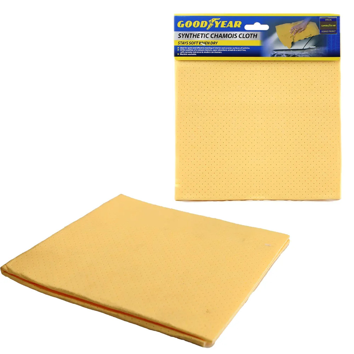 Get that showroom shine without the fuss with the Goodyear Synthetic Chamois. This clever chamois cloth brings you all the absorbency and softness of a traditional leather chamois – but with added durability and modern practicality.